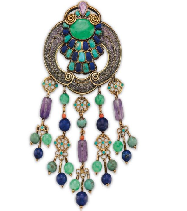 Брошь с несколькими драгоценными камнями, эмалью и золотом от Луиса Комфорта Тиффани, Tiffany & Co.: