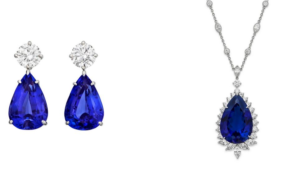 Серьги и колье-подвеска с танзанитами и бриллиантами от Tiffany & Co.: