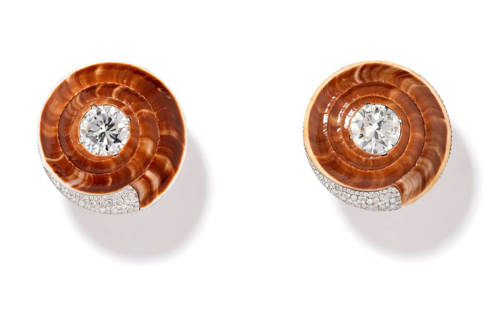 Серьги с крупными раковинами улиток, бриллиантами и золотом по дизайну Гленна Спиро: