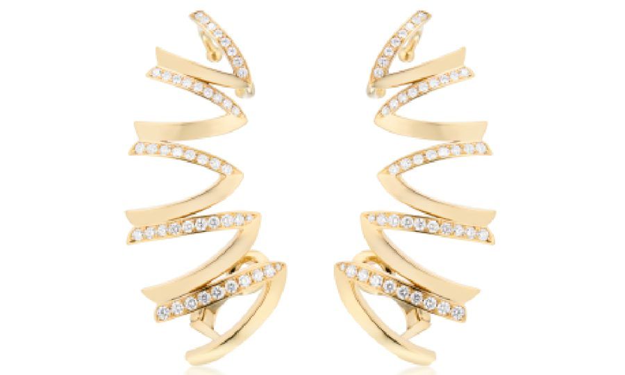 Серьги-каффы Echo Chamber от Renisis из 18-каратного желтого золота, украшенные бриллиантами и скрытой инкрустацией из перламутра: