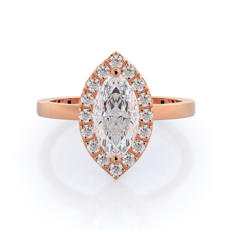 Помолвочное кольцо с бриллиантом огранки маркиз из розового золота: