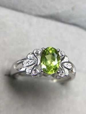 Приятная зеленоватая расцветка кристалла хорошо сочетается с белым, голубым, желтым и розовым оттенками. Прозрачные камни подчеркивают глубину цвета хризоберилла, акцентируя на нем все внимание