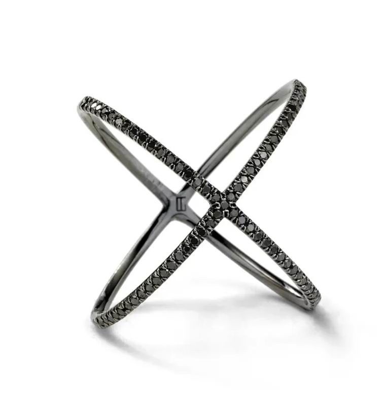 Х-образный дизайн привлекает внимание, особенно в обрамлении металлического блеска черненого белого золота. Несколько украшений, созданных Евой Ферен, были замечены на таких знаменитостях, как Зендея, Клэр Дэйнс, а также Сара Джессика Паркер. Если вы хотите добавить в свою коллекцию украшение от этого дизайнера, кольцо X с черным бриллиантом – безусловно, уникальный и достойный экземпляр.