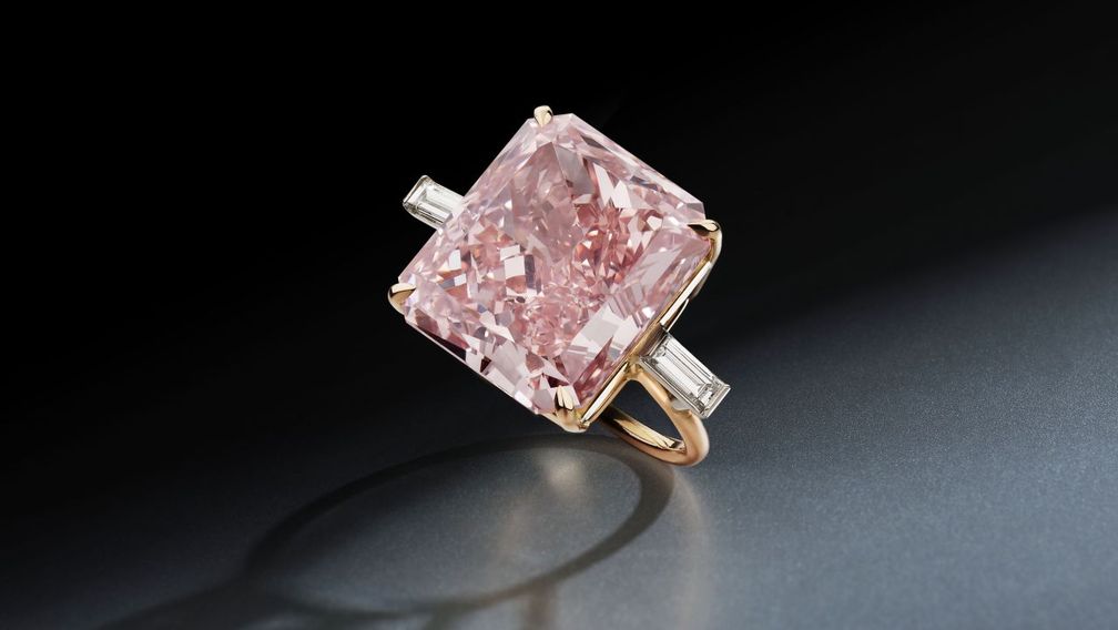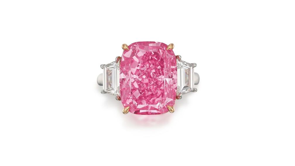 Этот бриллиант огранки кушон, весом 10,57 карата, фантазийного ярко-пурпурно-розового цвета, безупречный внутри стал главным событием аукциона Sotheby’s New York Magnificent Jewels в июне. Eternal Pink, самый дорогой камень такого цвета, представленный на аукционе, принес $ 34,8 млн.