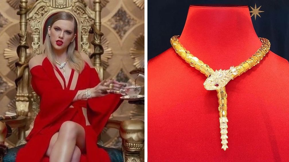 Доверьтесь Свифт в создании завершенного образа. Она сочетала колье с тремя браслетами Serpenti, украшенными бриллиантами pavé. Помимо этих дорогих украшений, на видео Свифт также демонстрирует кольца в змеиной тематике от Lydia Courteille, Borgioni и Gilan.