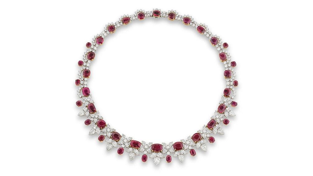 Аукционный дом предлагает это колье с рубинами и бриллиантами.
