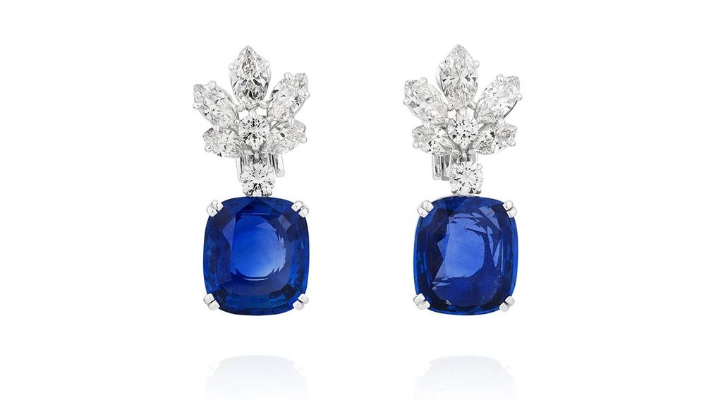 Пара сережек с цейлонскими сапфирами весом 12,31 и 12,69 карата.