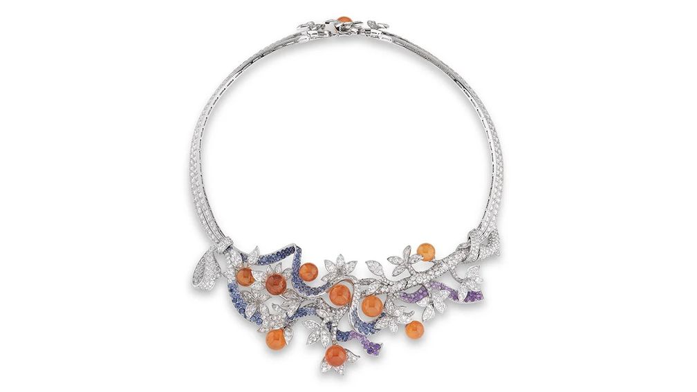 Это колье Les Jardins от Van Cleef & Arpels украшено цветными сапфирами, гранатами и бриллиантами.