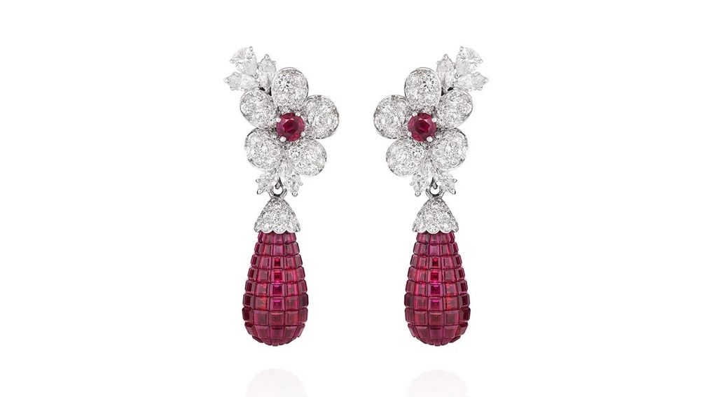Пара сережек с рубинами и бриллиантами от Van Cleef & Arpels.