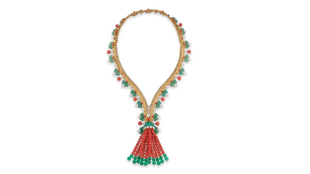 Колье-браслет Zip с кораллами, хризопразами и бриллиантами от Van Cleef & Arpels.