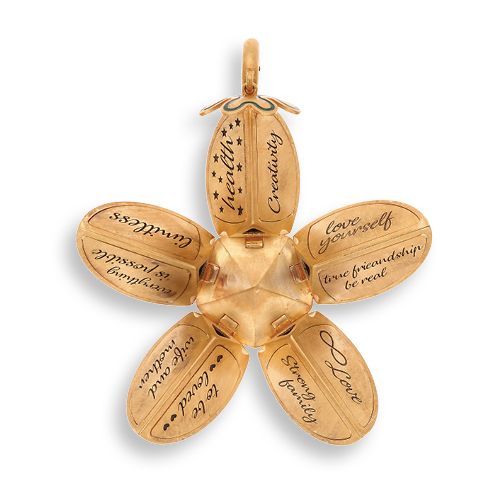 Она – королева радостной многослойности, дизайнер, которая разрушила правила и заменила их современным видением. Любовь проходит через всю ее коллекцию, наиболее ярко проявляясь в шармах, которые открываются, чтобы показать личные надписи.