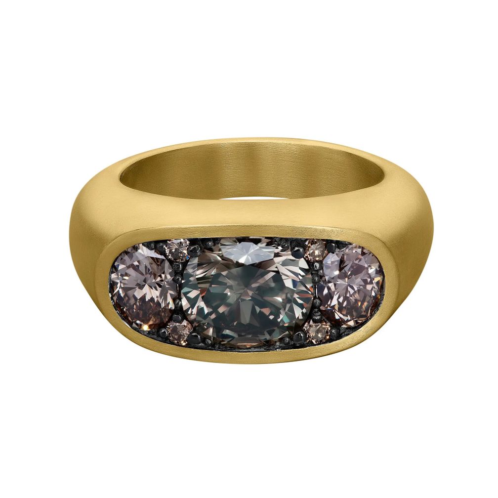 Кольцо Cartouche с бриллиантами цвета шампань от Shola Branson. Дизайнер сказал, что в последнее время возрос спрос на бриллианты более теплых оттенков: