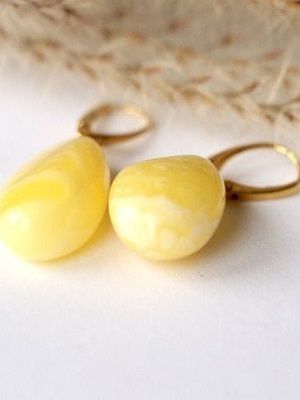 Поскольку королевский янтарь – один из самых редких камней, его часто подделывают. Поэтому при выборе убедитесь, что вы покупаете серьги с природным минералоидом. Так, он не должен быть ослепительно белым. Настоящий самоцвет имеет мягкий светлый оттенок – молочный или слоновой кости, но белоснежным он быть не может.