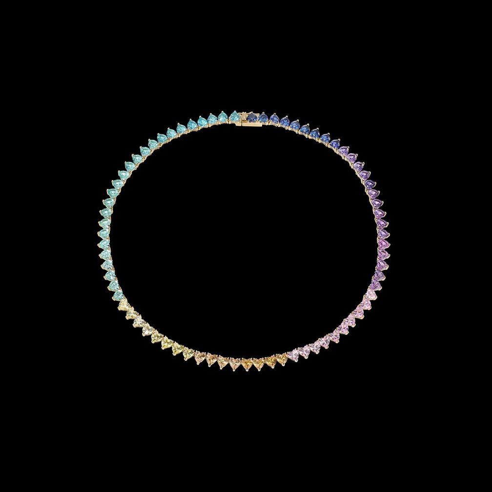 Колье Pasque Eternity Heart от Anabela Chan из вермеля с покрытием из 18-каратного желтого золота и с выращенными в лаборатории зелеными, желтыми, розовыми и синими сапфирами в форме сердца: