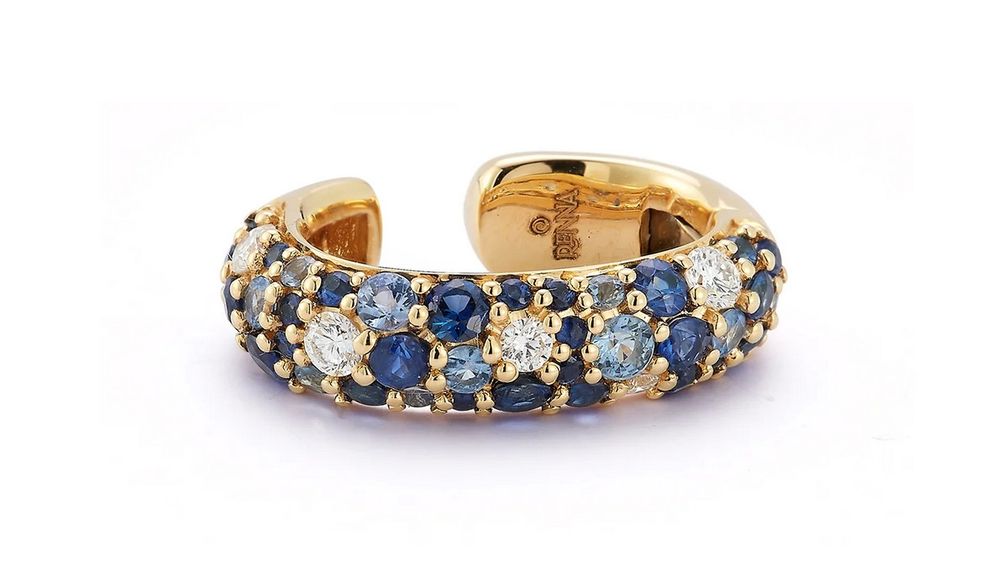 Серьга-кафф Tidepool от Renna из 18-каратного желтого золота с сапфирами общим весом около 0,7 карата и бриллиантами общим весом 0,12 карата: