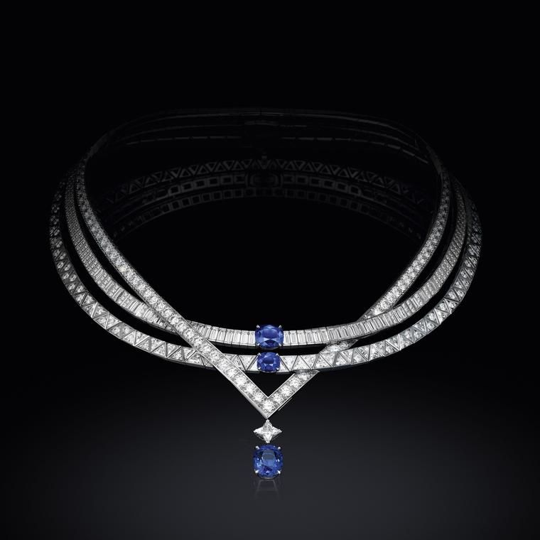 Геометрический узор из бриллиантов в ожерелье Gravité напоминает о научном эксперименте Фуко с маятником в Париже конца XIX века. Louis Vuitton Awakened Hands Awakened Minds Chapter II 2025: