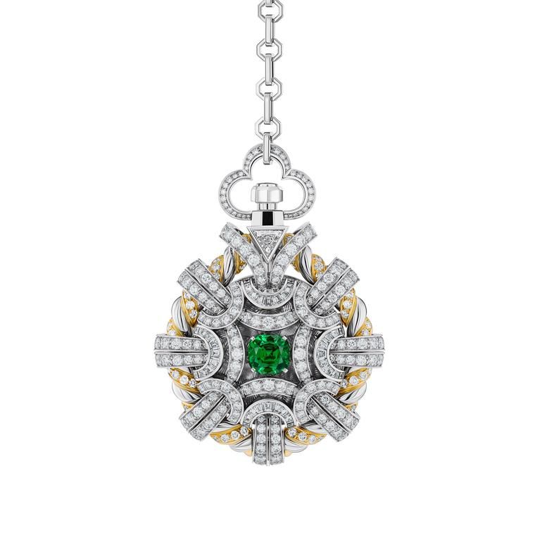 Chapter II Awakened Hands Awakened Minds от Louis Vuitton включает карманные часы Phenomenal с замысловатым мотивом веревки на задней крышке. Louis Vuitton Awakened Hands Awakened Minds Chapter II 2025: