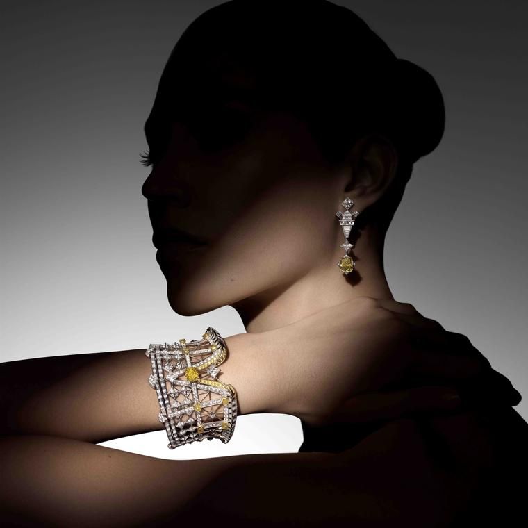 Драматичный дизайн Victoire вдохновлен Эйфелевой башней и воплощен в жизнь белыми и желтыми бриллиантами. Louis Vuitton Awakened Hands Awakened Minds Chapter II 2025:
