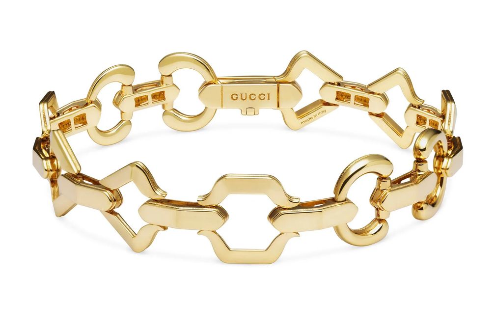 Этим летом форма была в центре внимания в коллекции ювелирных украшений Gucci: фирменный мотив horsebit (отмечающий свое 70-летие) переплетался с геометрическими фигурами, включая шестиугольник, на кольцах, ожерельях и одно- и двухрядных браслетах из желтого золота.