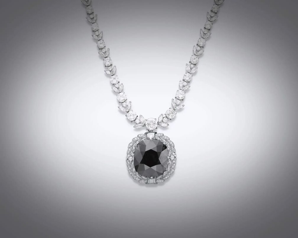 Оправленный в подвеску в виде броши, окруженную белыми бриллиантами, и подвешенный к ожерелью из 126 бриллиантов, «Черный Орлов» является одним из самых крупных черных бриллиантов, когда-либо обнаруженных, и одним из самых известных в мире.