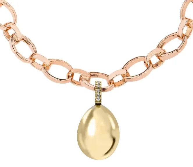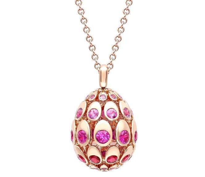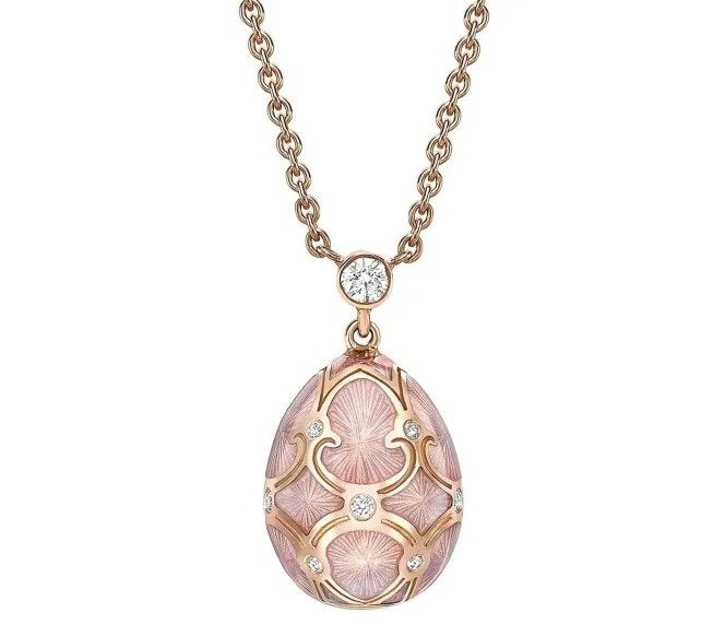 Новый кулон отдает дань этой традиции, открываясь, чтобы показать миниатюрное яйцо в искусно выполненном гнезде. Несколько слоев эмали, тщательно нанесенных вручную, придают украшению характерную бархатистую поверхность, а сверкающие бриллианты подчеркивают скульптурную чистоту его формы. По словам Сергея Мосунова, владельца и генерального директора Fabergé, кулон «представляет собой важный шаг к более минималистичному языку дизайна», одновременно «идеально воплощая визуальную идентичность, историю и наследие бренда».