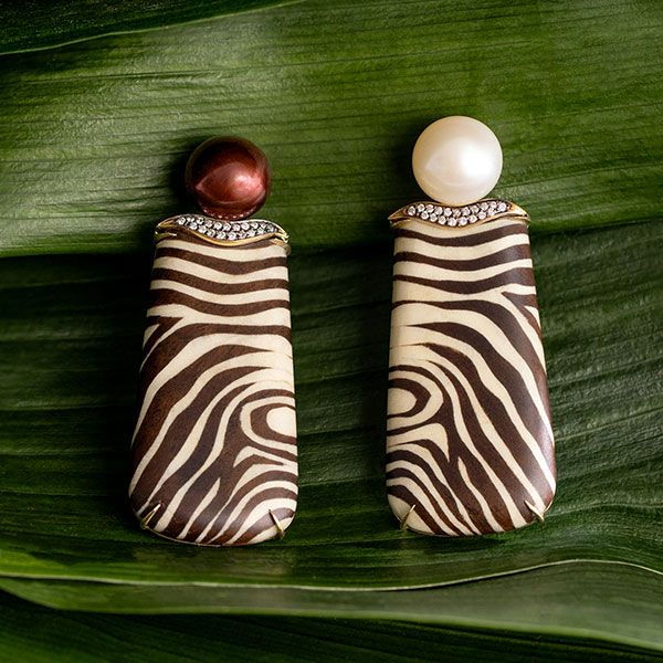 Серьги с маркетри в виде узора зебры от Сильвии Фурманович, украшенные бриллиантами и вставками из 18-каратного желтого золота (все фото предоставлены Сильвией Фурманович):