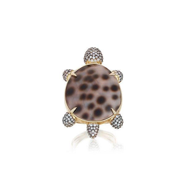 Кольцо в виде черепахи из раковины с бриллиантами в 18-каратном желтом золоте