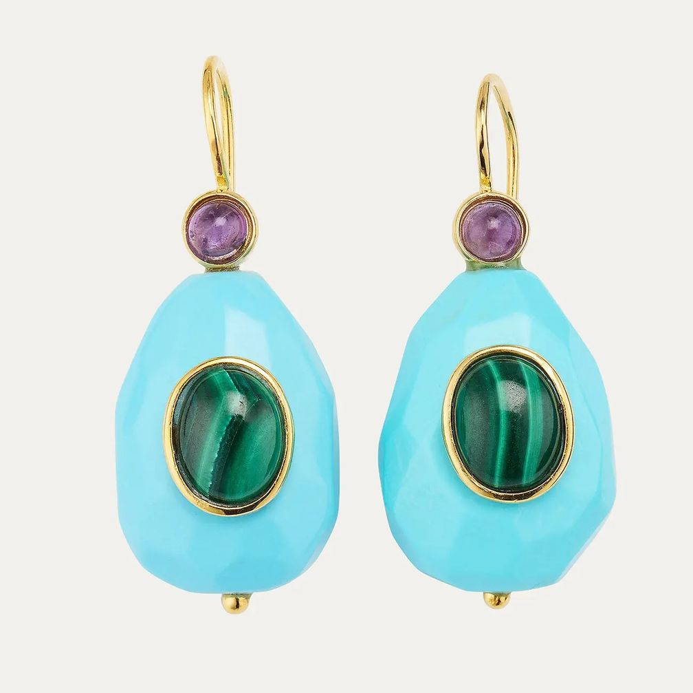 Серьги-капли из смолы с аметистом и малахитом от итальянских дизайнеров Грации и Марики Воцца: