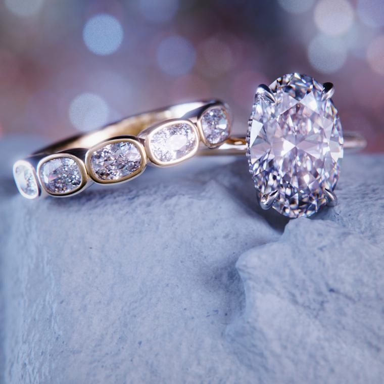 На снимке крупным планом видна точная оправа камней, лежащая в основе помолвочных колец Solitaire x Alex Armen, изготовленных на заказ с использованием ноу-хау многих поколений производителей: