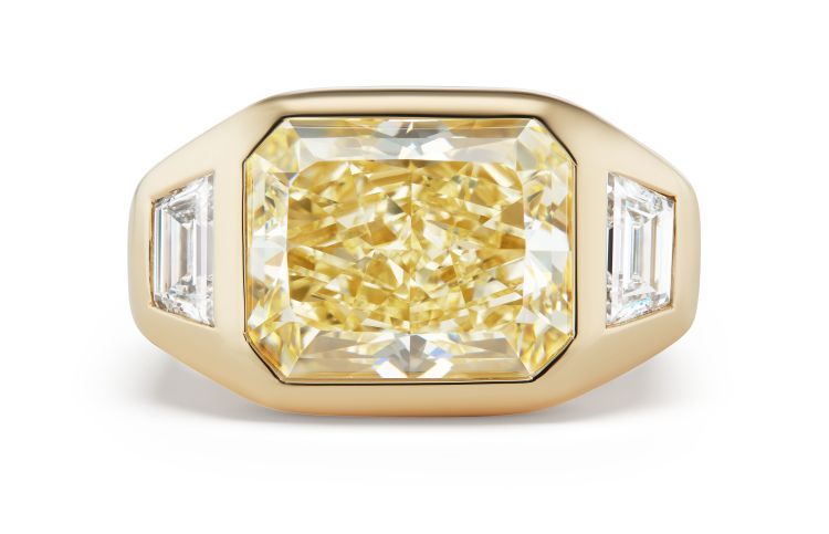 Кольцо из 18-каратного золота с желтым бриллиантом огранки радиант весом 10,37 карата от Mark Broumand: