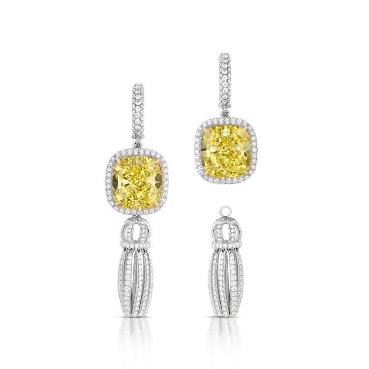 Серьги из платины с белыми и желтыми бриллиантами со съемными кисточками от Stephen Silver: