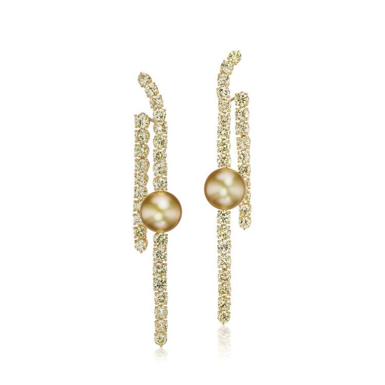 Серьги из 18-каратного золота с жемчугом Южного моря и желтыми бриллиантами от Assael: