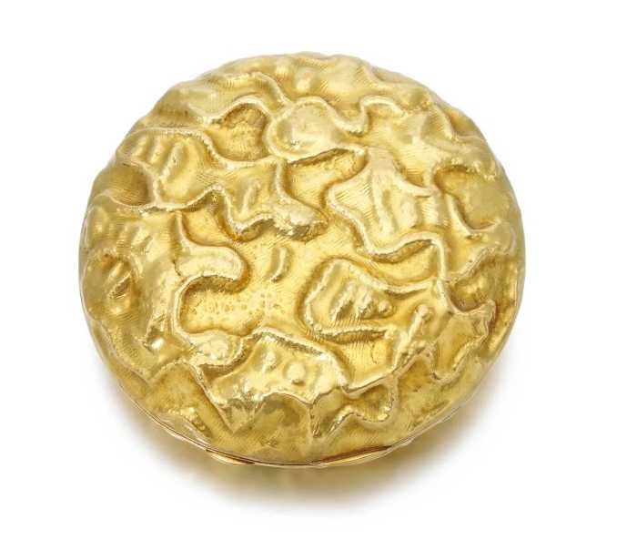 Художественное и скульптурное мастерство не покидает ювелирные изделия, созданные в Италии или вдохновленные ею. Забегая вперед на столетие или около того, мы находим совсем другой, но столь же характерный пример в золотой пудренице Masenza Roma. «Это такая простая вещь, которую женщина могла бы носить с собой в сумке, чтобы использовать в качестве зеркала, но художники этого периода из Masenza создавали прекрасные скульптуры, предназначенные для ношения».
