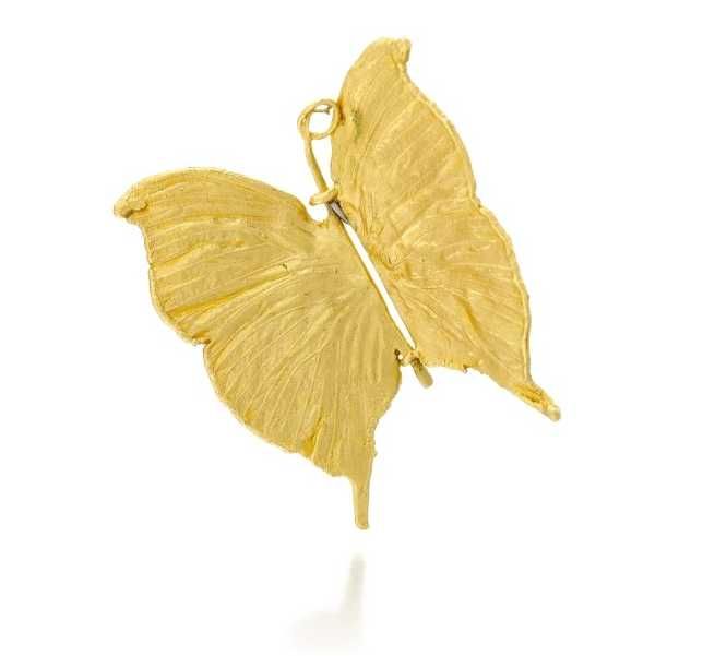 Среди других предметов носимого искусства, представленных на продаже, брошь/кулон «Бабочка» французского скульптора и дизайнера Клода Лаланна, созданная около 1991 г., преодолевает разрыв между абстракцией Каннилла и блестящим репрезентативным совершенством броши и манжеты «Пантера» из золота, бриллиантов и эмали от David Webb или инкрустированного бриллиантами кольца Panthère от Cartier.
