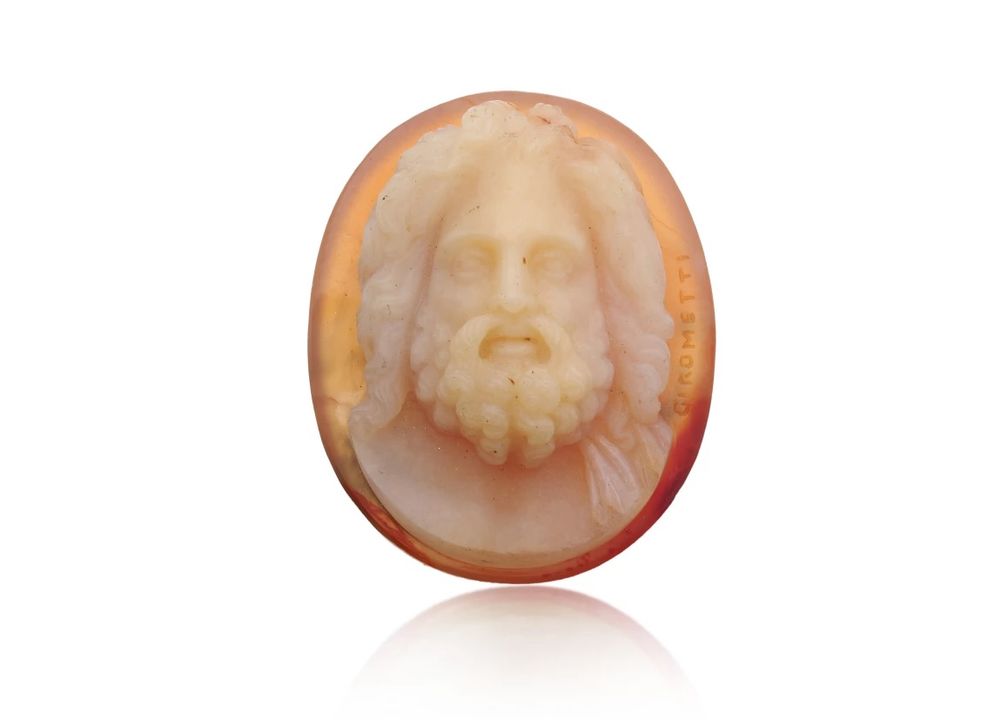 На крошечном украшении размером всего 23,4 мм x 18,8 мм и глубиной 8,6 мм изображены классические черты Зевса. Неудивительно, что камеи Джирометти были востребованы королями, императорами, римскими папами и даже Джорджем Вашингтоном.
