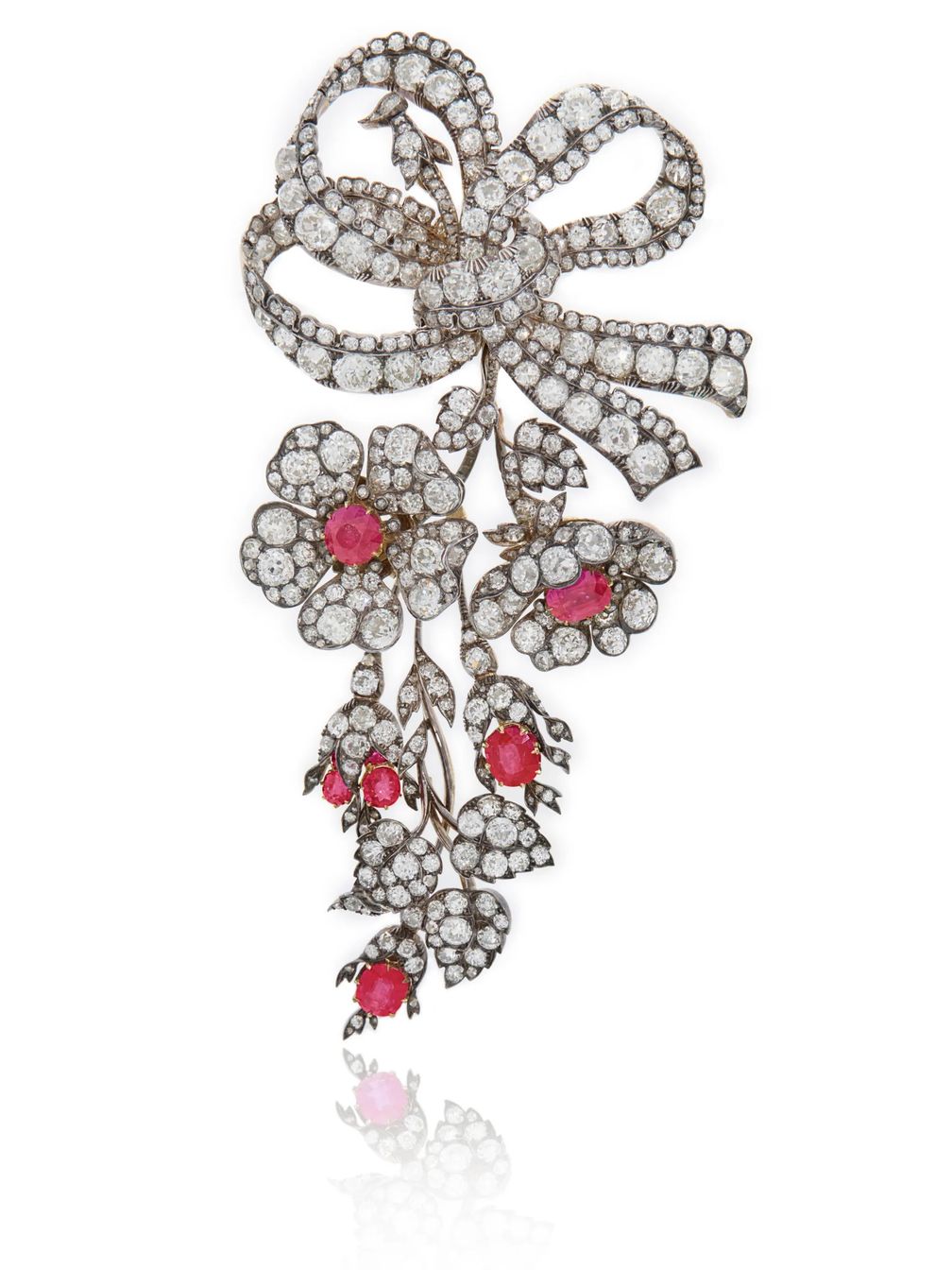 Брошь с рубинами и бриллиантами, Köchert, около 1890-1895 гг.: