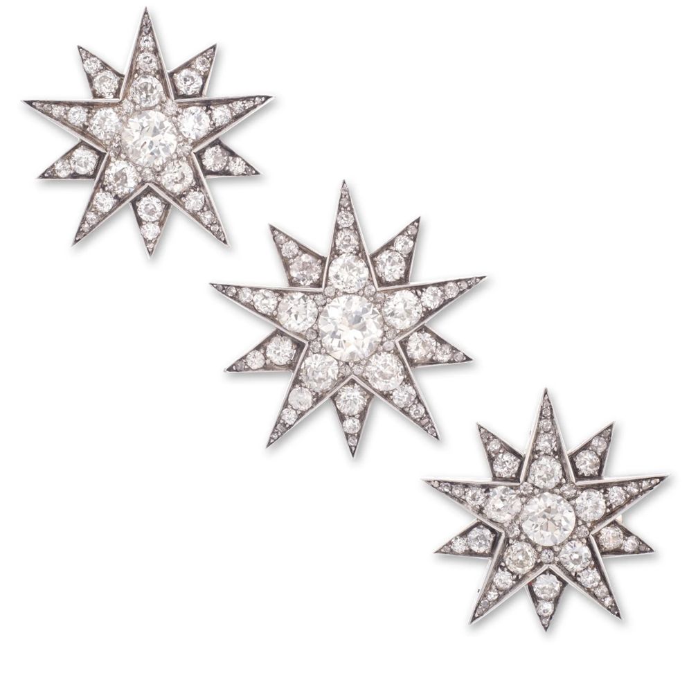 В этой коллекции представлены три звезды из природных бриллиантов, которые можно носить как брошь, заколку или оправу для диадемы.