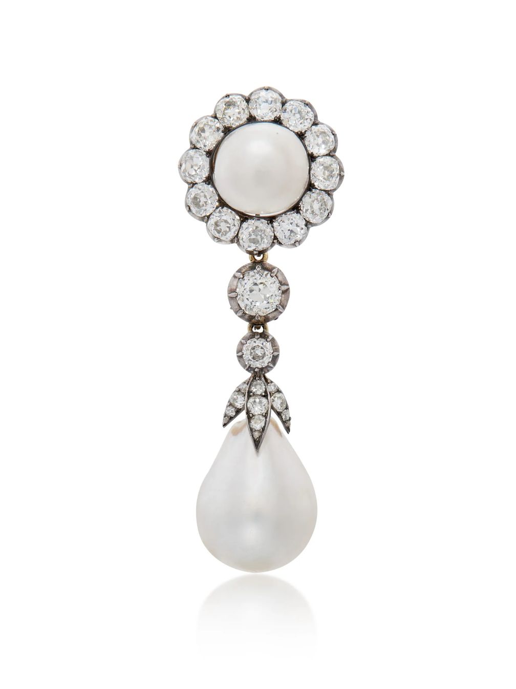 Брошь с природным жемчугом и бриллиантами, около 1865 г.: