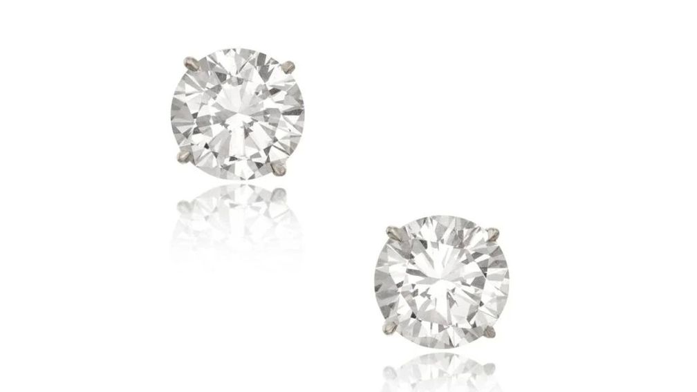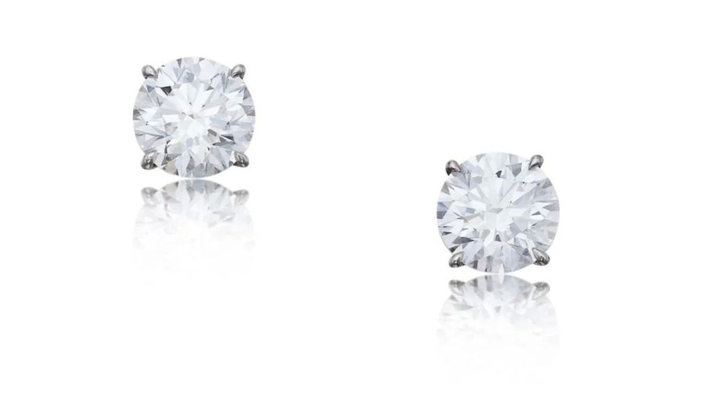 Пара серег-гвоздиков украшена круглыми бриллиантами цвета D типа IIa, один весом 3,33 карата чистоты VVS1, а другой весом 3,20 карата чистоты VVS2. Их верхняя оценка составляет 250 000 долларов: