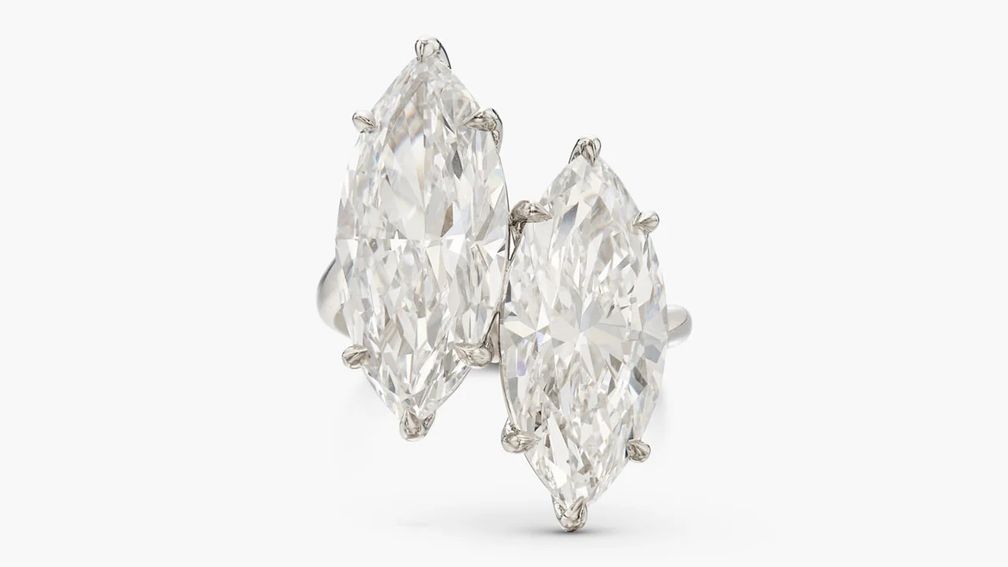 Кольцо с двумя безупречными бриллиантами в форме маркиз, цвета D, весом 6,68 и 7,20 карата.