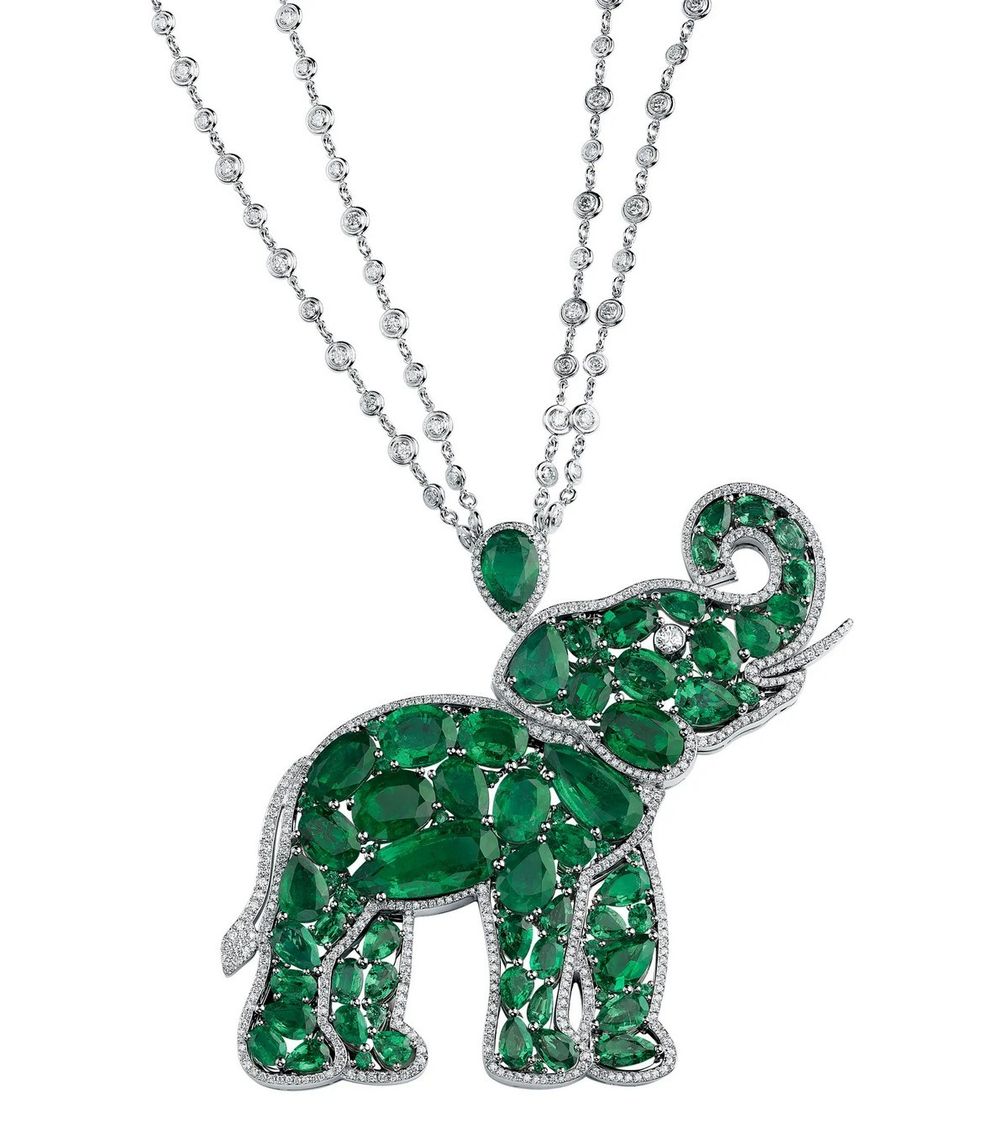 Подвеска в виде слона из белого золота и платины с изумрудами и бриллиантами, коллекция высокого ювелирного искусства Insofu: