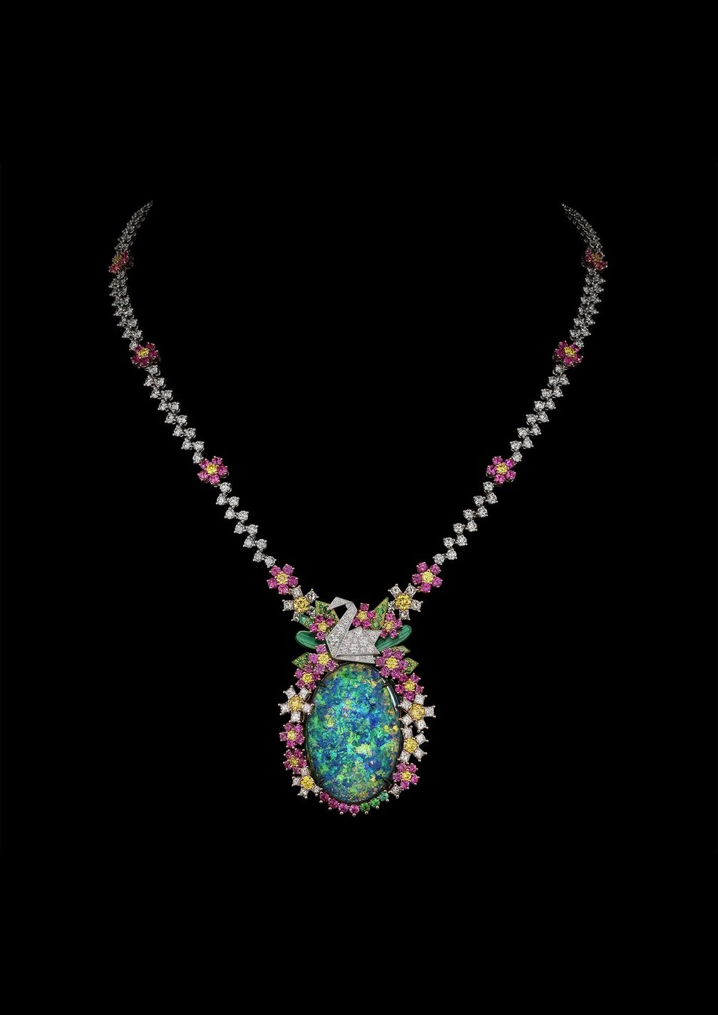 Ожерелье из белого, желтого и розового золота с белыми и желтыми бриллиантами, черным опалом, изумрудами, розовыми сапфирами, розовыми рубинами, цаворитами, малахитом и зеленым лаком, коллекция высокого ювелирного искусства Diorama & Diorigam: