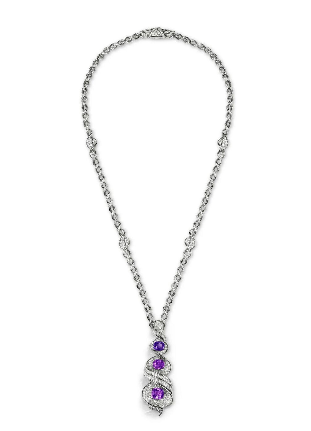 Ожерелье Unicorn из платины, бриллиантов и фиолетовых сапфиров, коллекция Blue Book 2024: Tiffany Céleste: