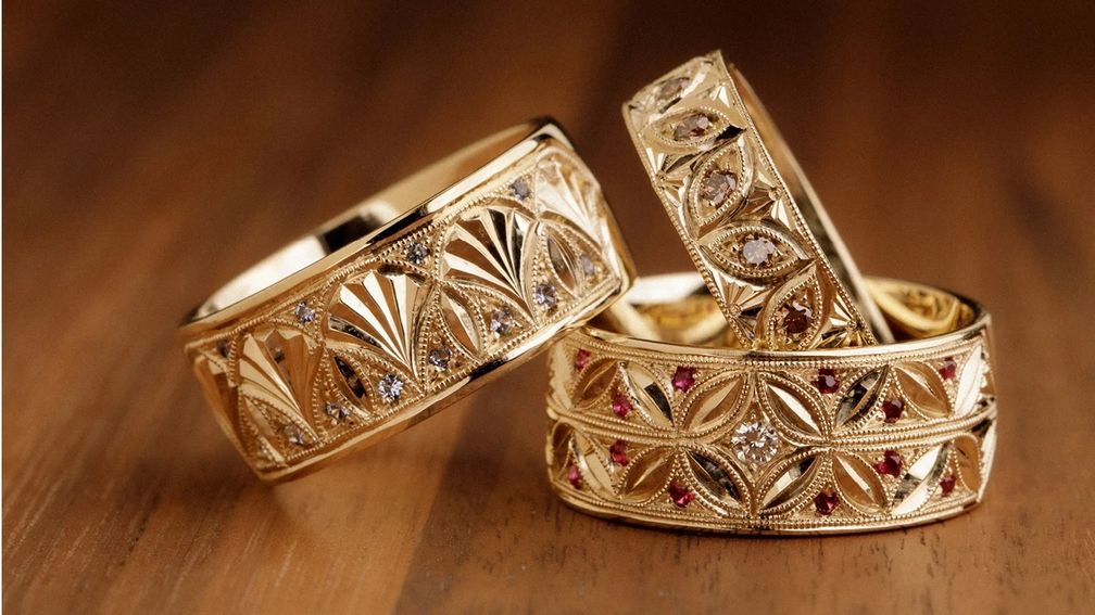Коллекция колец с ручной гравировкой из 14-каратного золота (Olivia Sugarman):