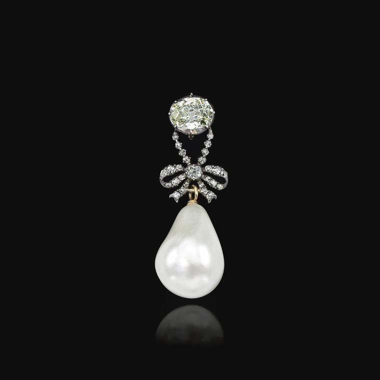 Подвеска в виде банта из природного барочного жемчуга и бриллиантов, некогда принадлежавшая последней королеве Франции, позже была продана на аукционе Sotheby’s в 2018 году за $ 36,2 млн благодаря своему исключительному провенансу: