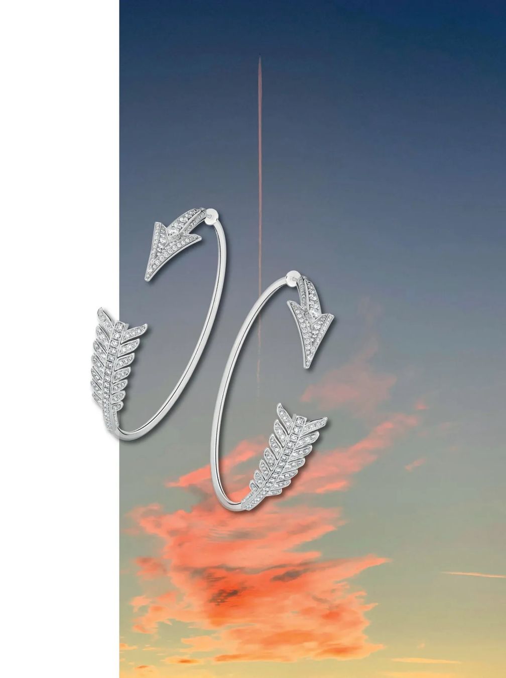 Серьги-обручи Flèche, выполненные из белого золота и украшенные бриллиантами, придают образу изюминку: