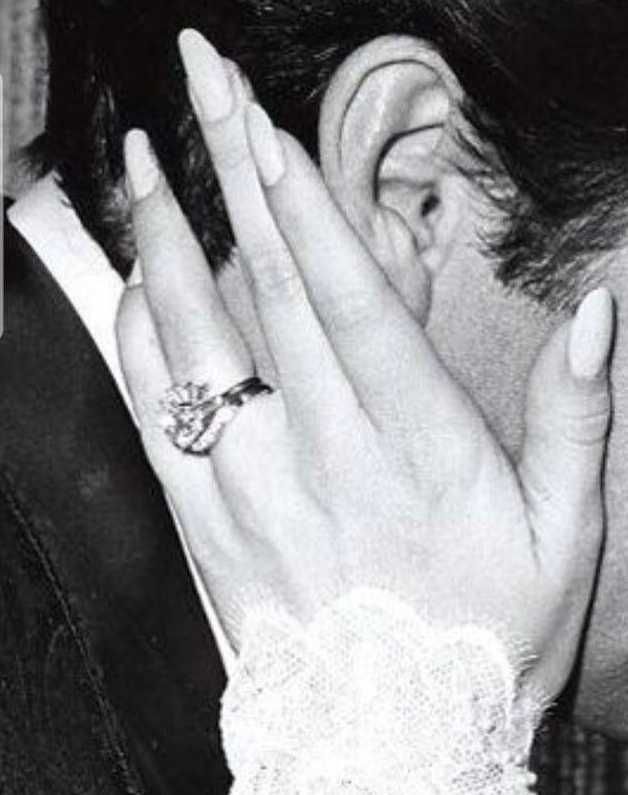 Загадочное помолвочное кольцо Присциллы, окутанное тайной, редко кто видел с тех пор, как в день ее свадьбы была сделаны зернистые черно-белые фотографии. В 2014 году Присцилла разместила в своем статусе в соцсети вопрос-ответ. «Вопрос: Сохранилось ли у вас помолвочное кольцо? Хотелось бы увидеть его дизайн», – написал один из поклонников. Она ответила: «О. Да, сохранилось. Может быть, когда-нибудь».