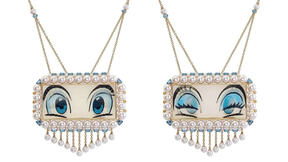 Итальянский ювелир Франческа Вилла тем временем радикально обновляет форму с помощью современных движущихся лентикулярных изображений, которые меняются при наклоне в разные стороны. Эти анимированные голографические изображения Lover’s Eye предлагают более причудливый подход к мотиву, создавая намеренно мультяшный эффект.