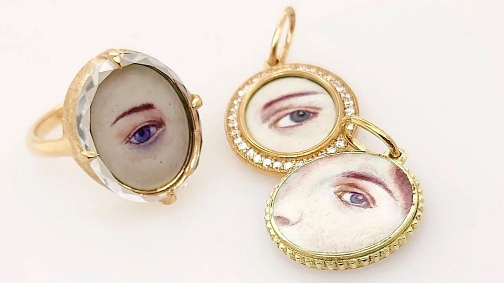 Но мотив, известный как Lover’s Eye («глаза влюбленных»), имеет свою особую историю. Отчасти портретный, отчасти ювелирный, этот неуловимый стиль, который трудно классифицировать, возник в конце 18-го и начале 19-го веков, когда броши и подвески с нарисованным глазом любимого человека стали символами романтики, тайны и преданности.