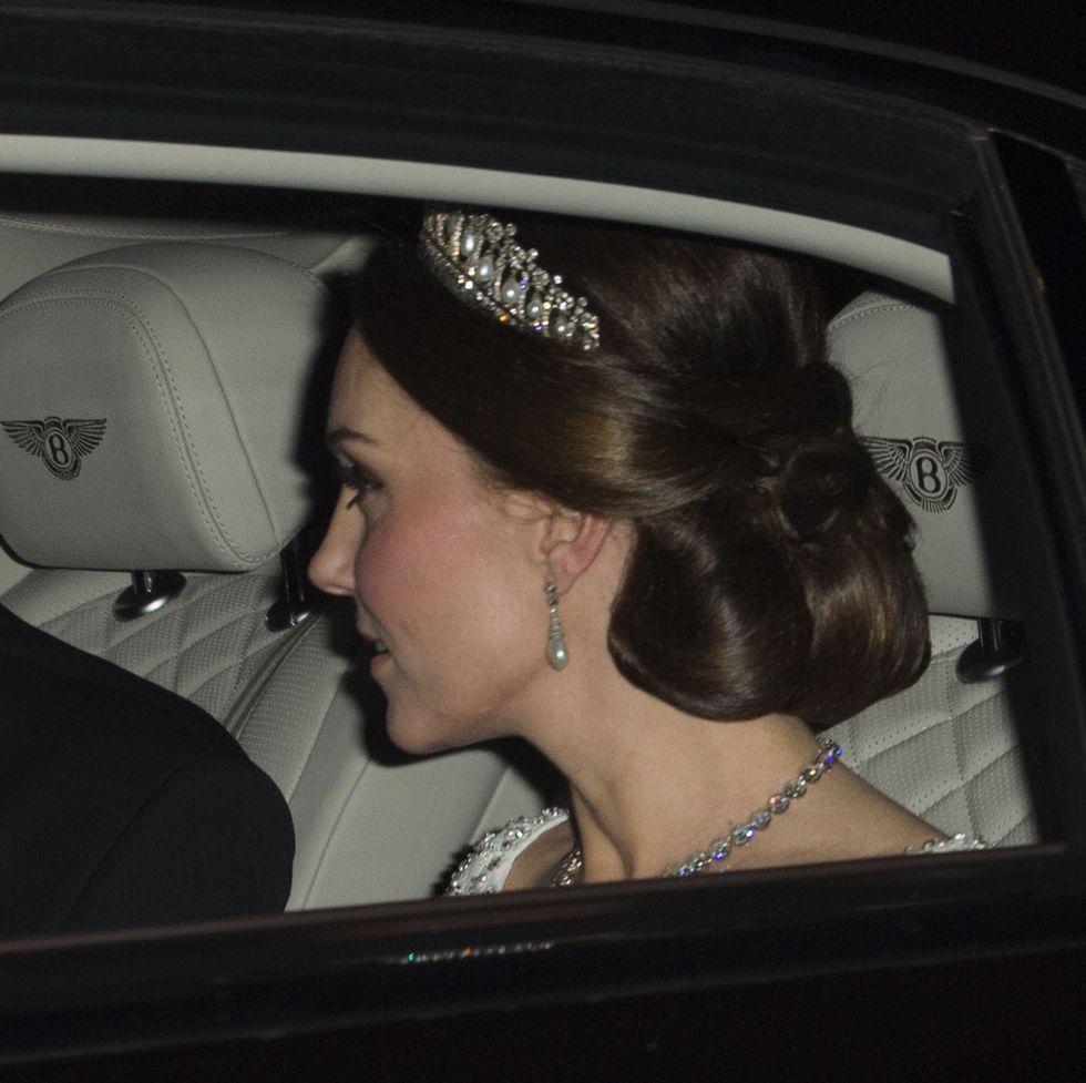 В 2017 году Кейт снова выбрала тиару Lover’s Knot для ежегодного дипломатического приема в Букингемском дворце. В том году она сочетала ее с бриллиантовым колье и серьгами с бриллиантами и жемчугом.